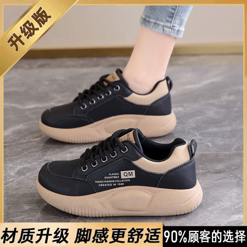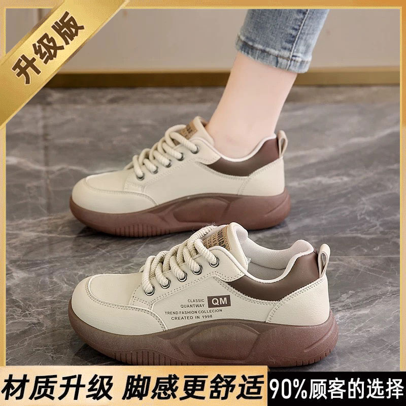 踩屎感真皮运动鞋女冬季2025年新款爆款皮面休闲宽胖脚软底旅游鞋