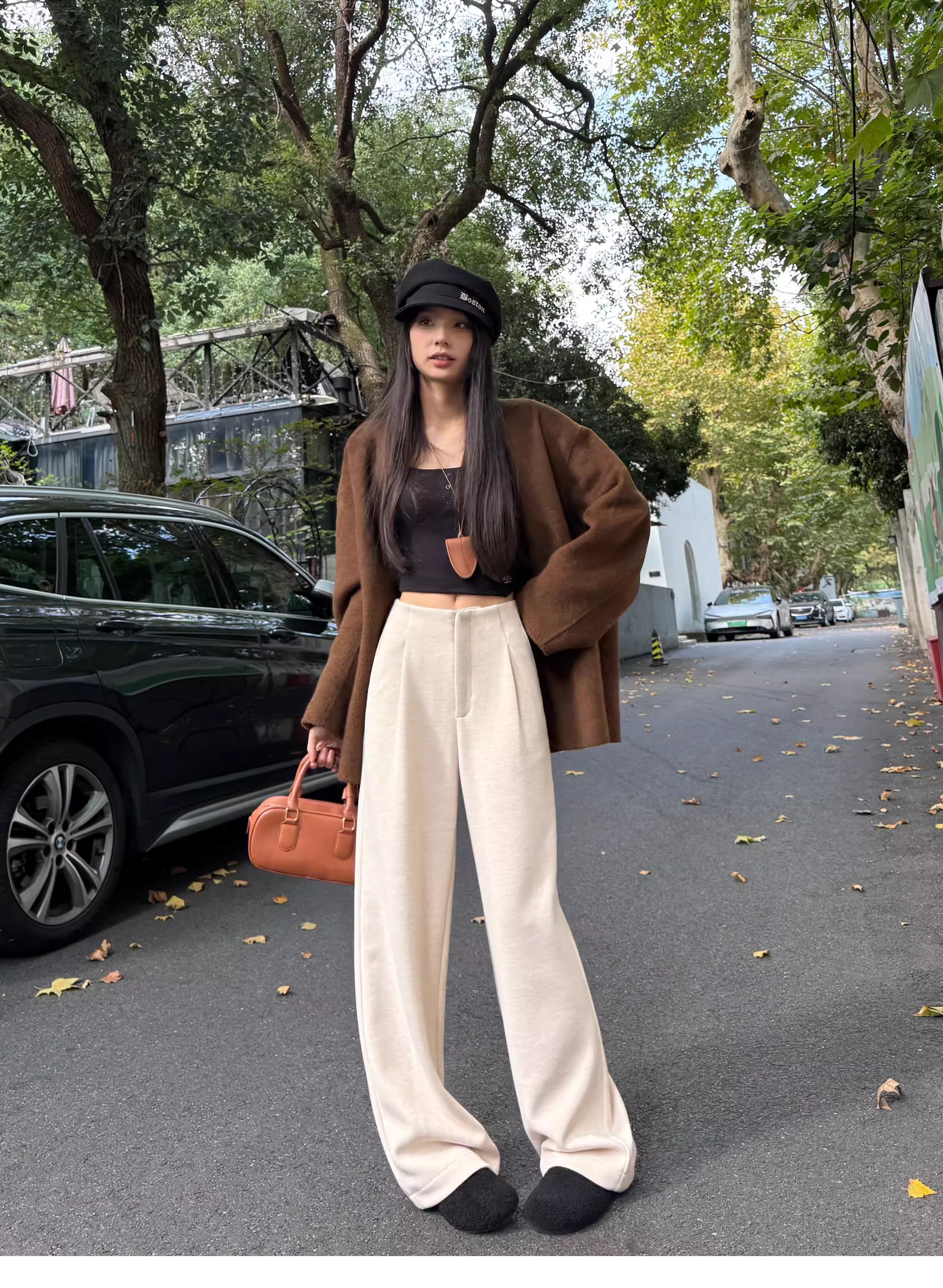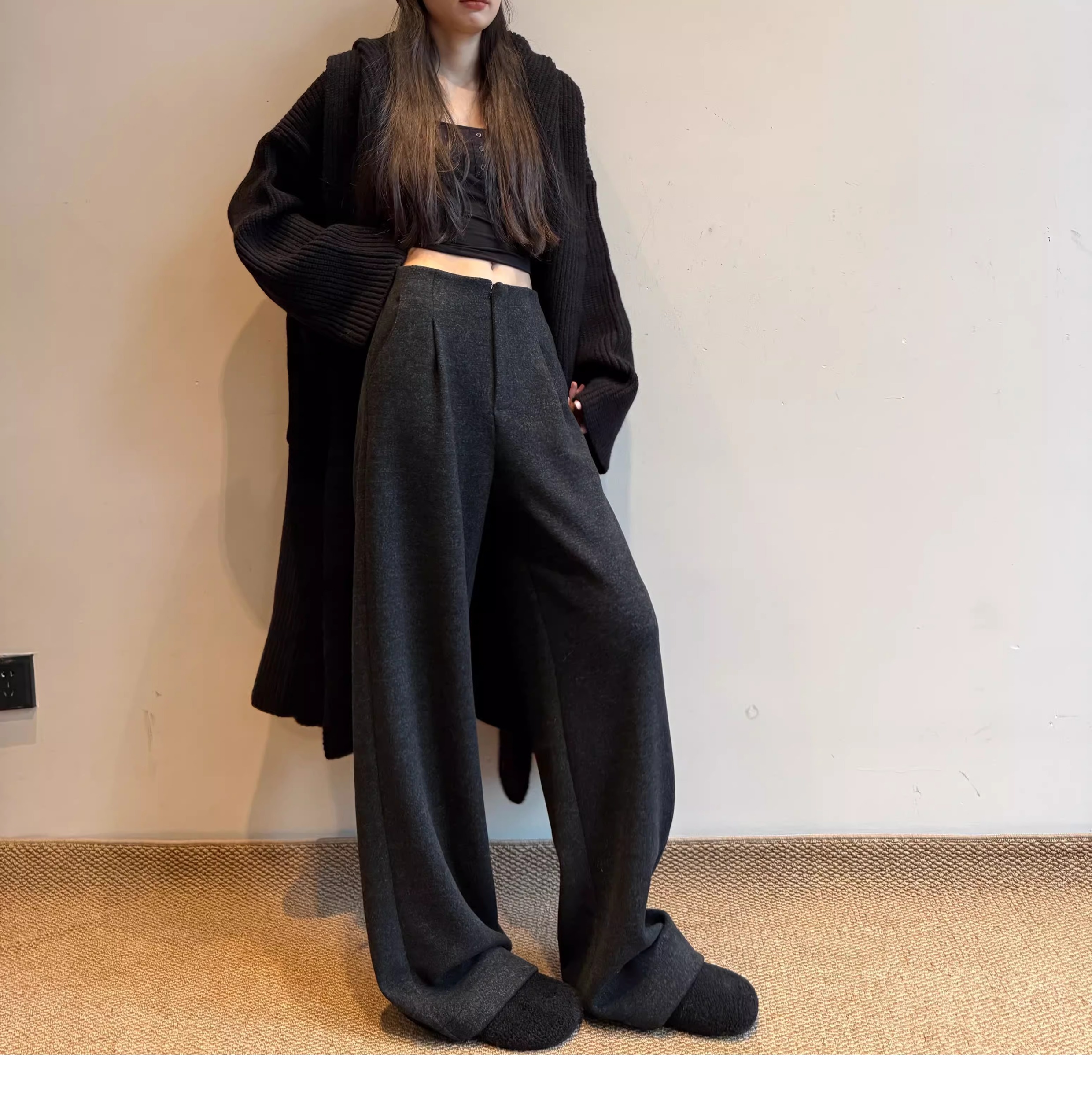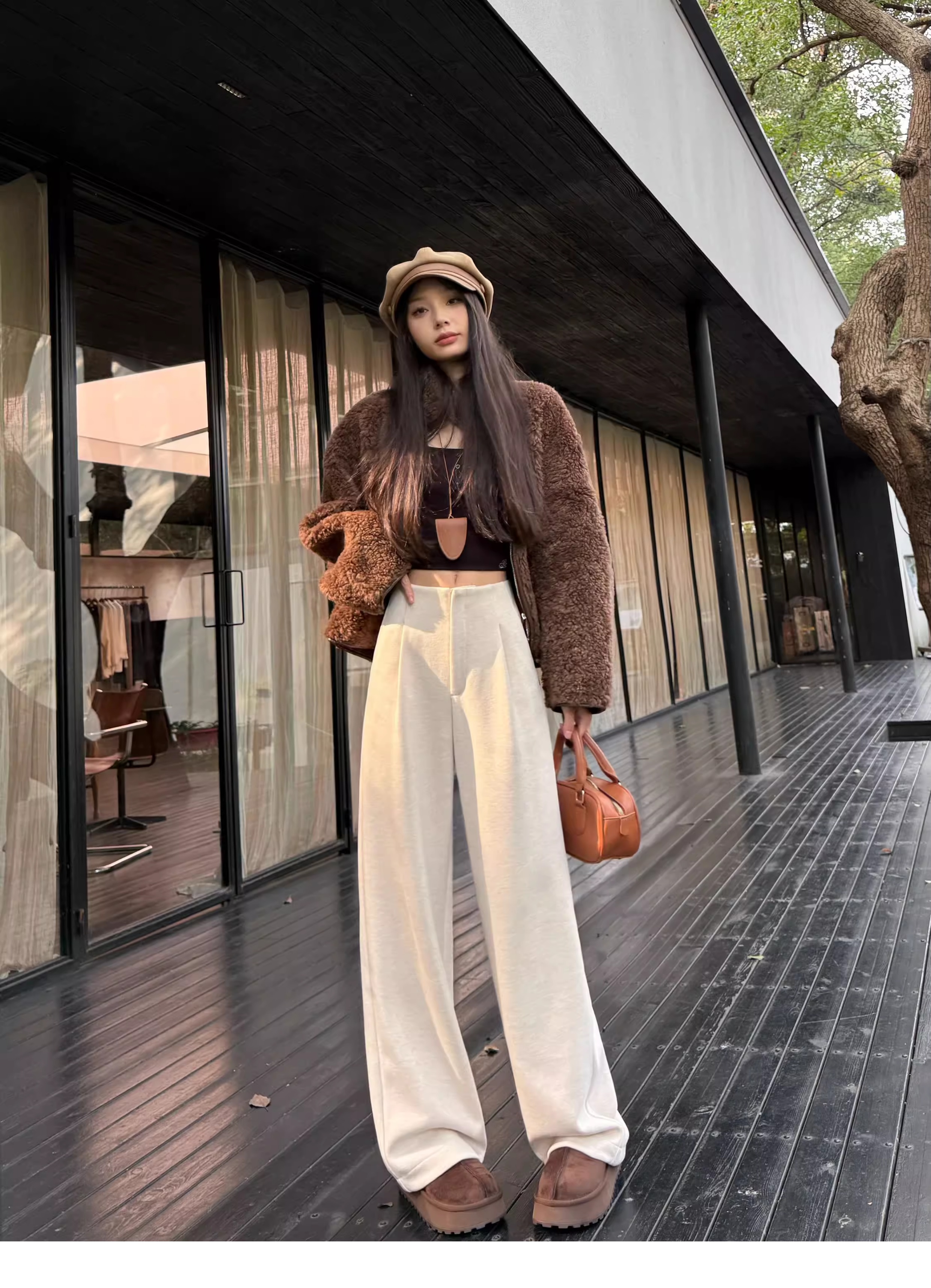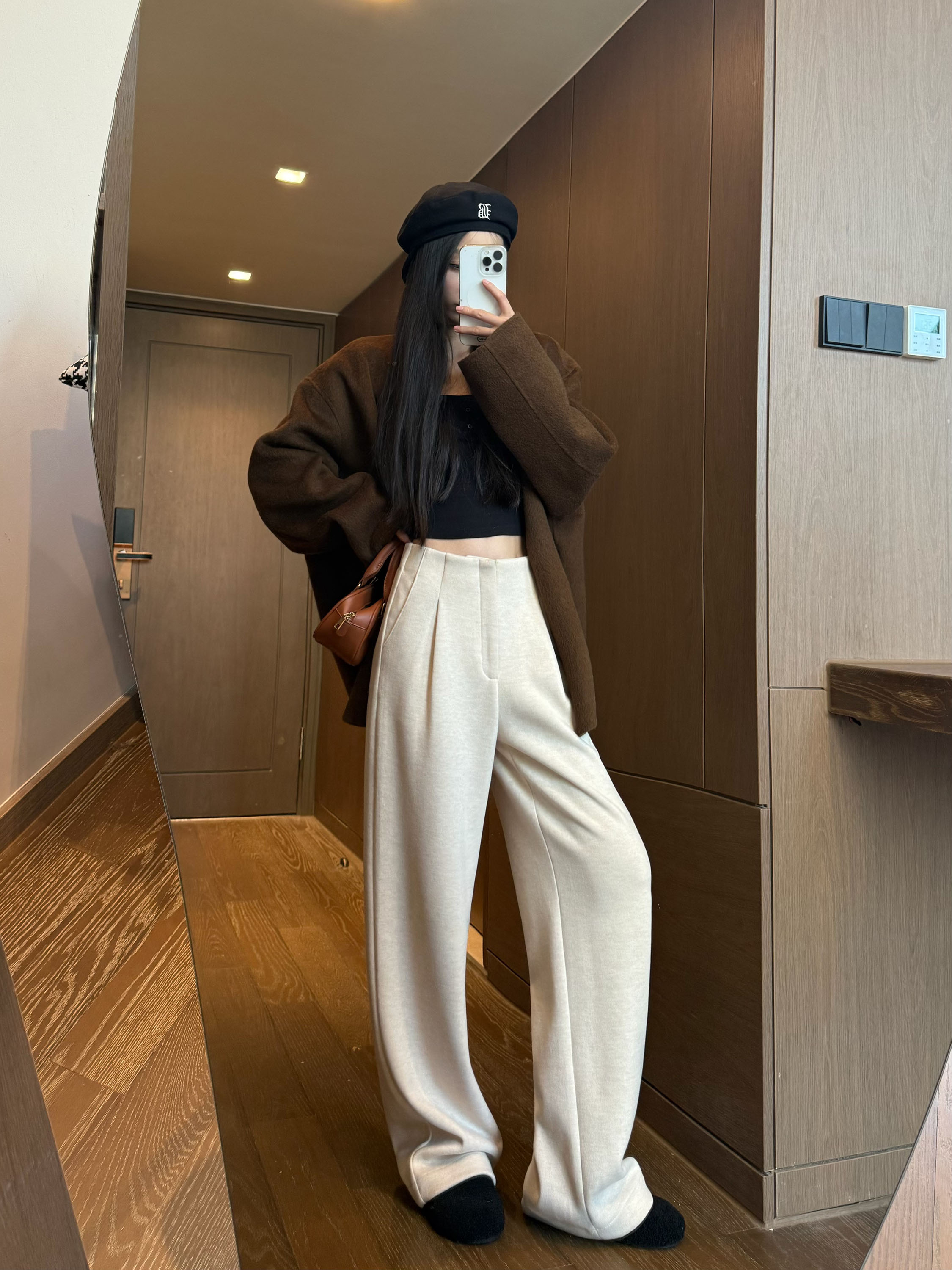 白色加绒加厚西装阔腿裤女秋冬款季羊毛糯米裤高腰垂感休闲直筒裤