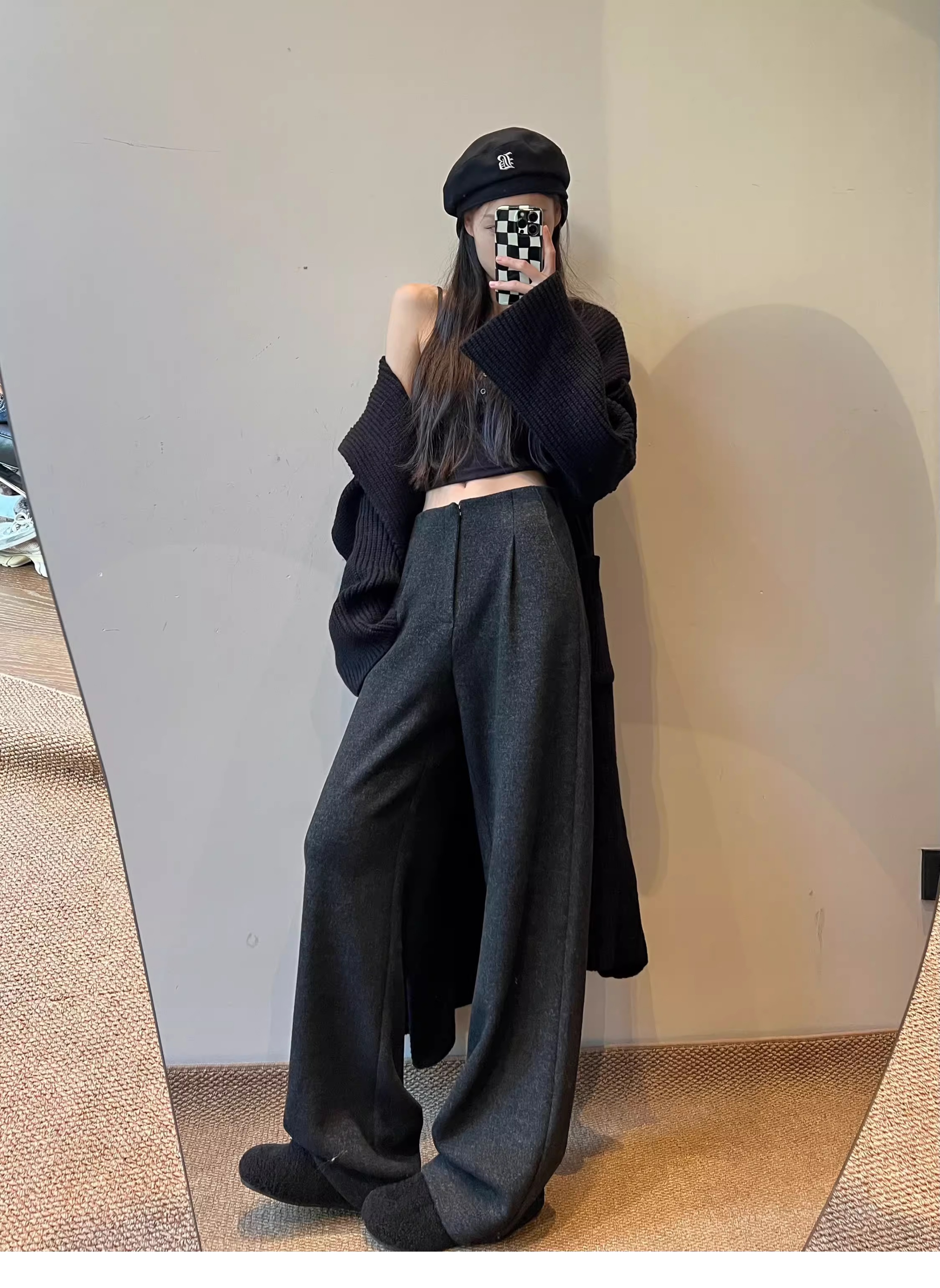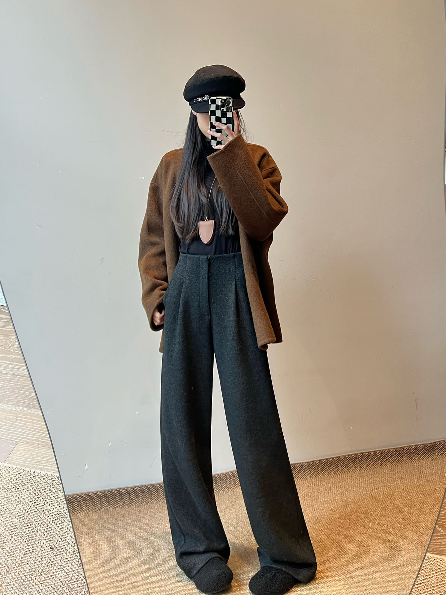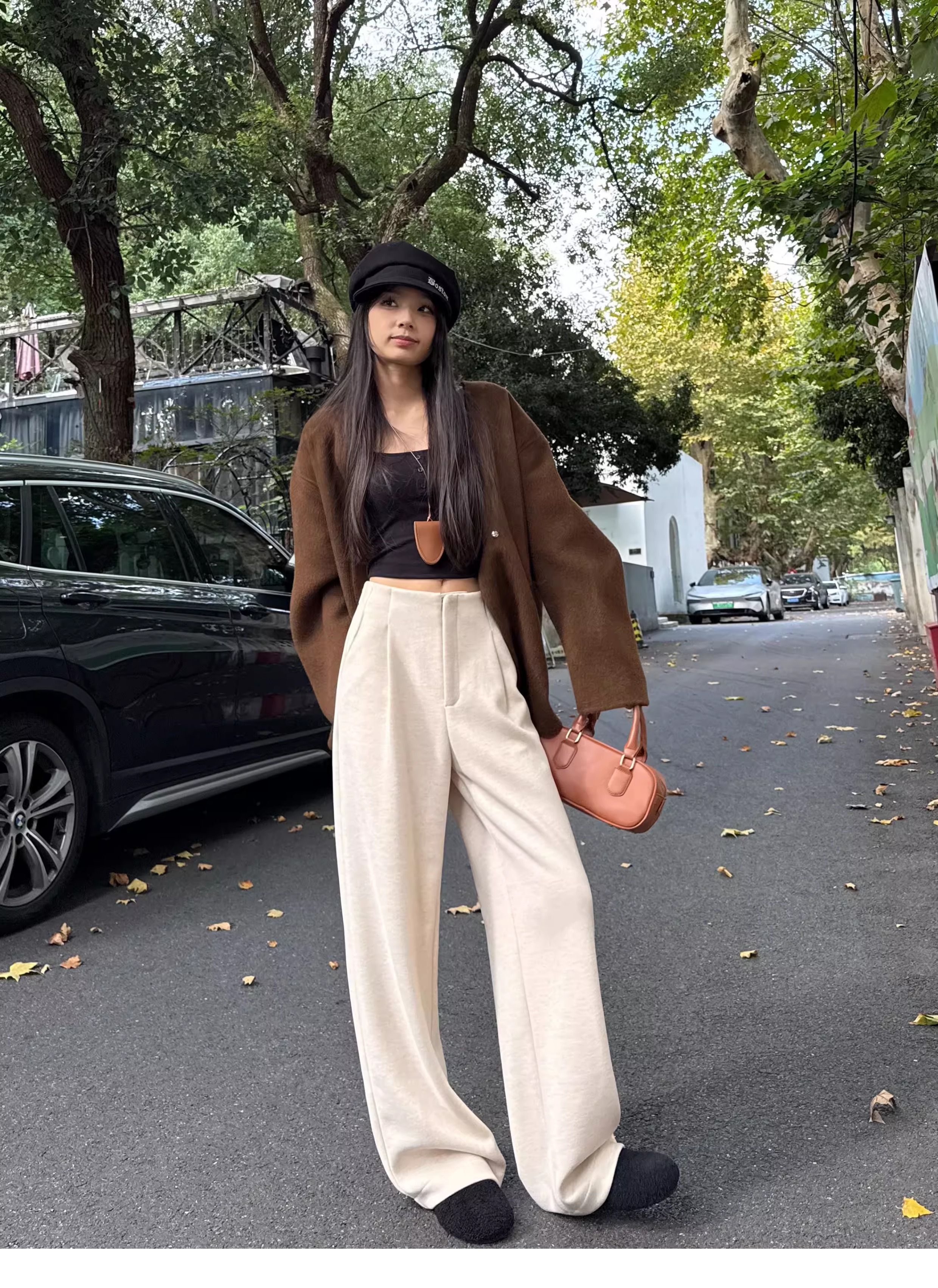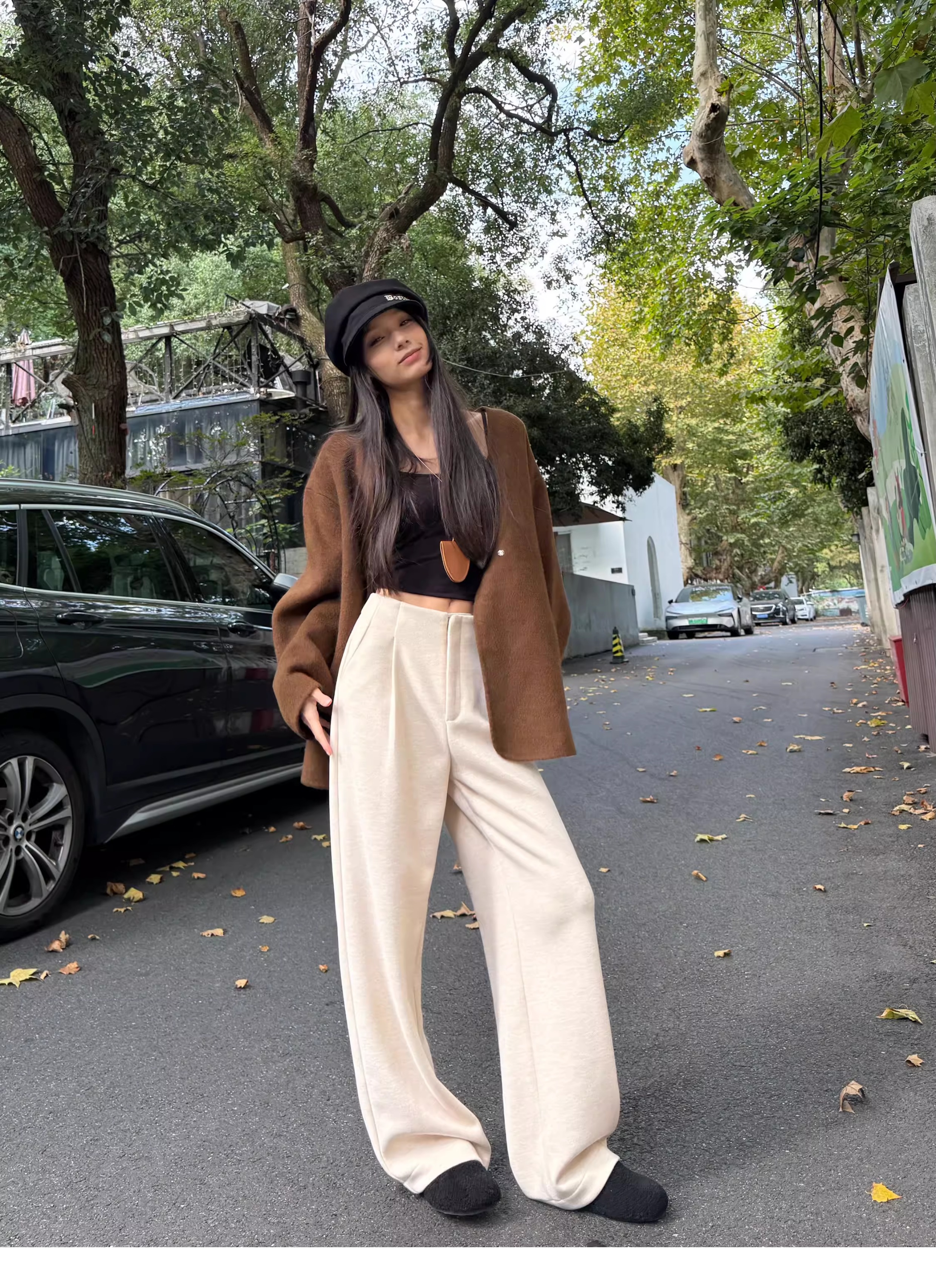 白色加绒加厚西装阔腿裤女秋冬款季羊毛糯米裤高腰垂感休闲直筒裤