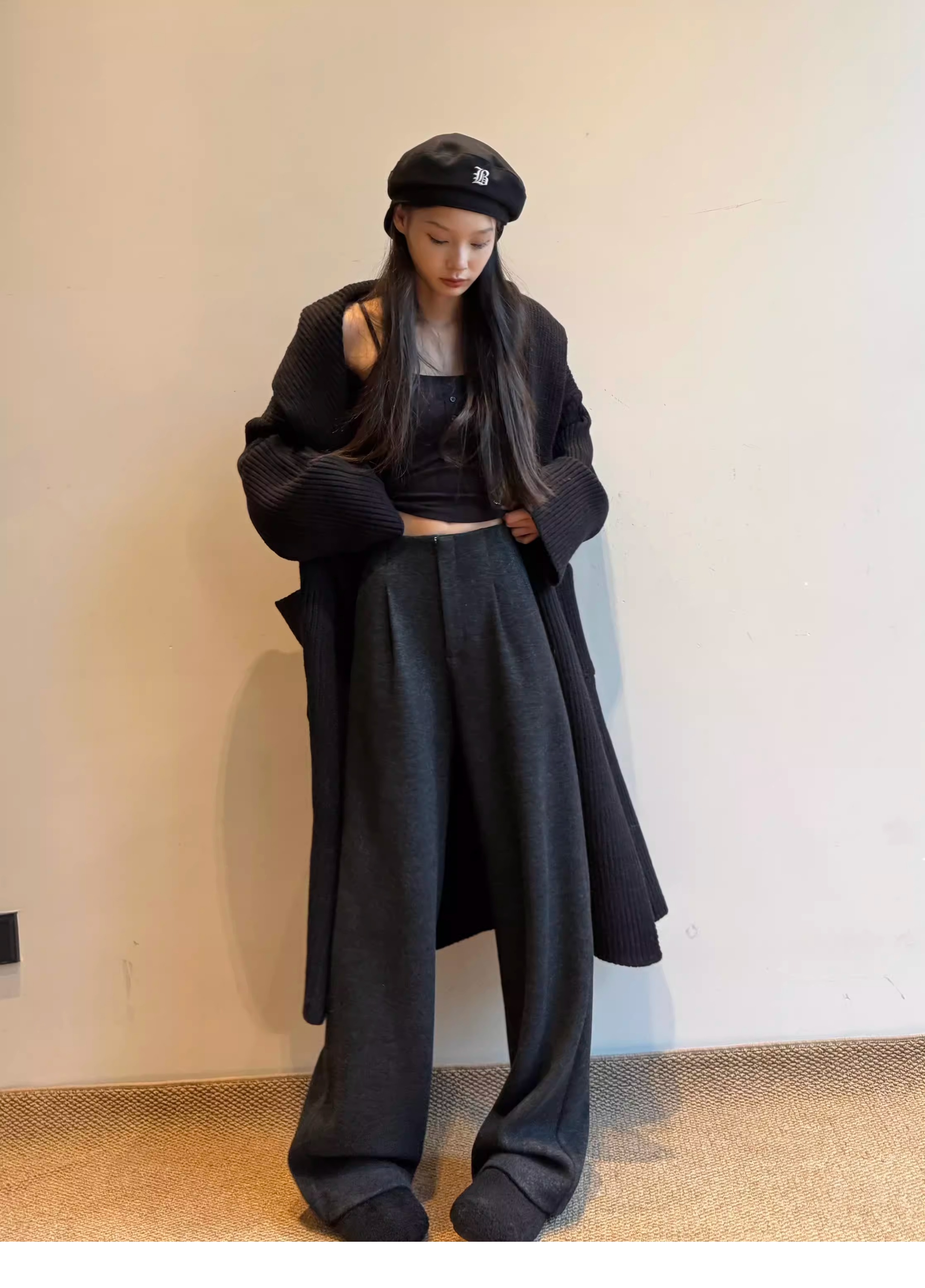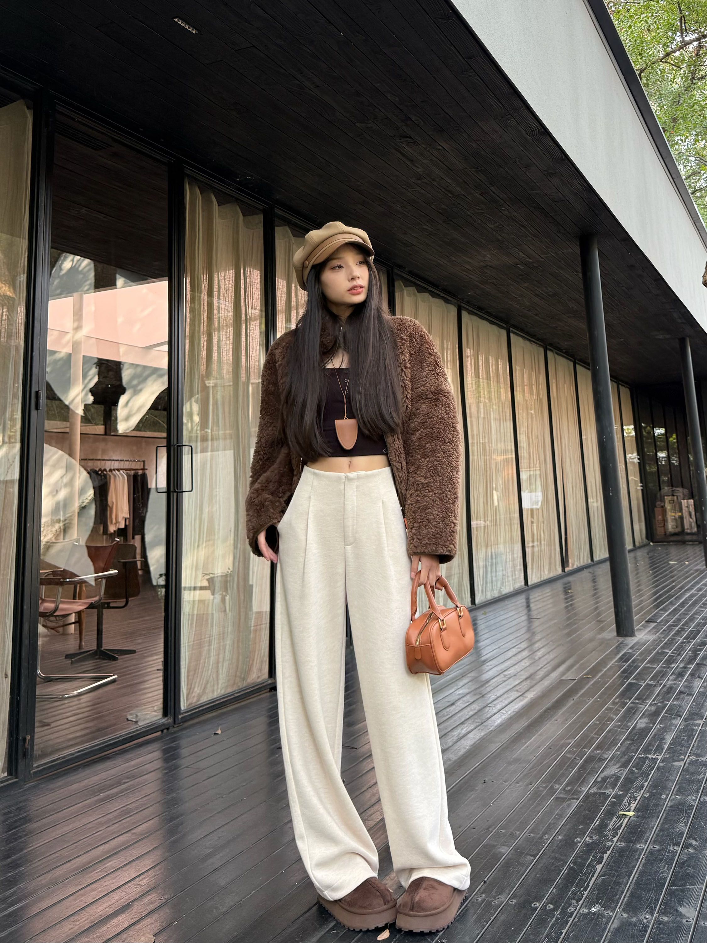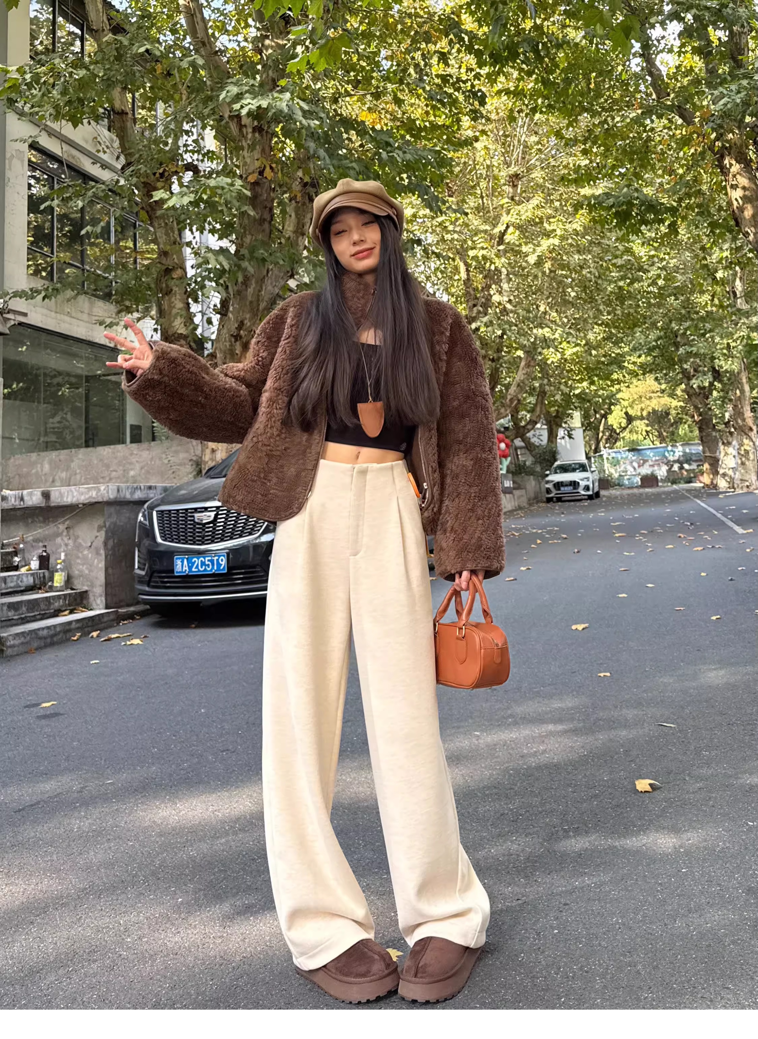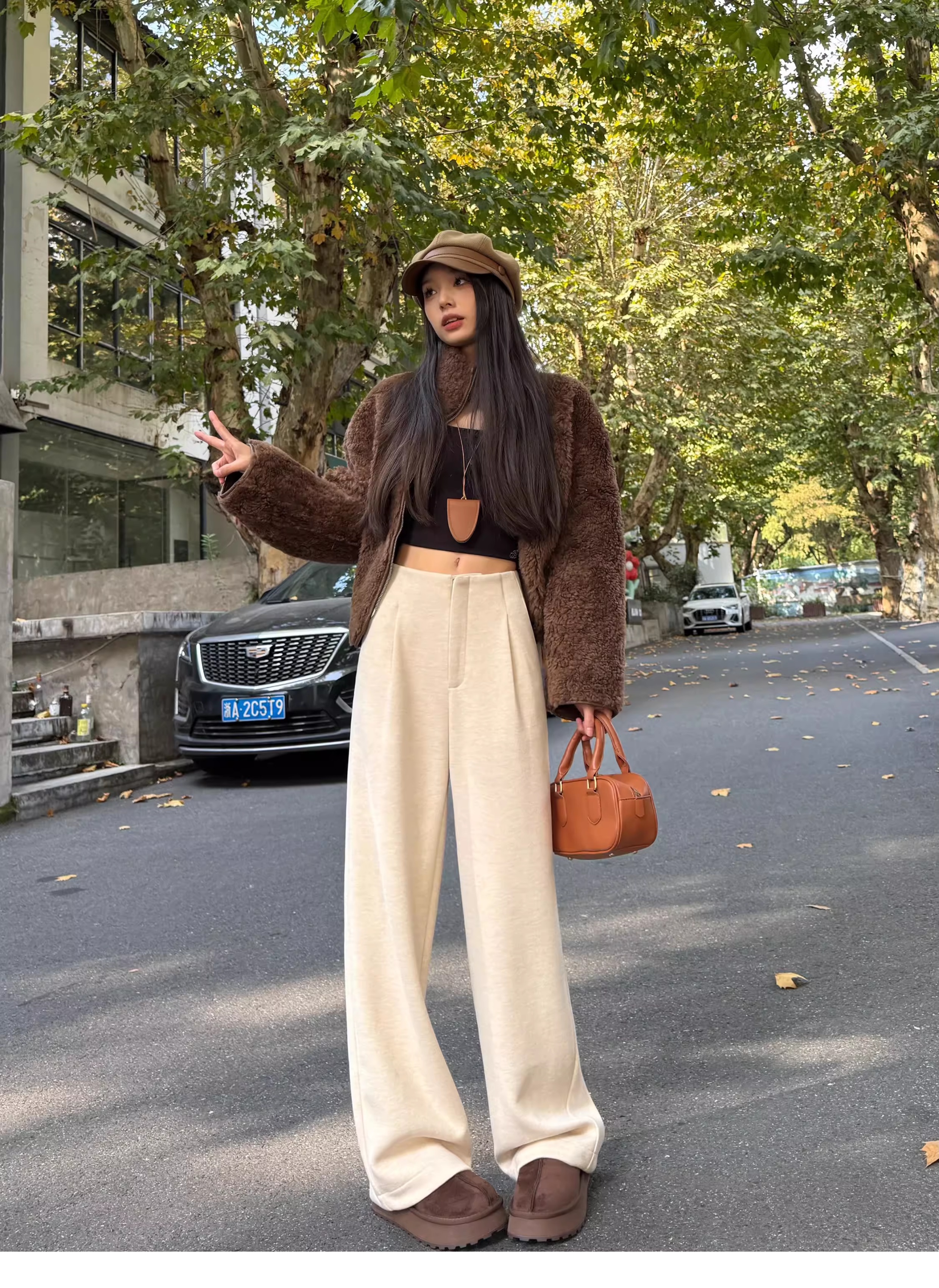 白色加绒加厚西装阔腿裤女秋冬款季羊毛糯米裤高腰垂感休闲直筒裤