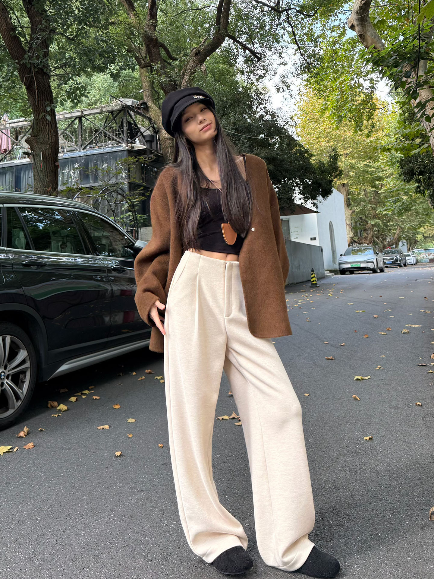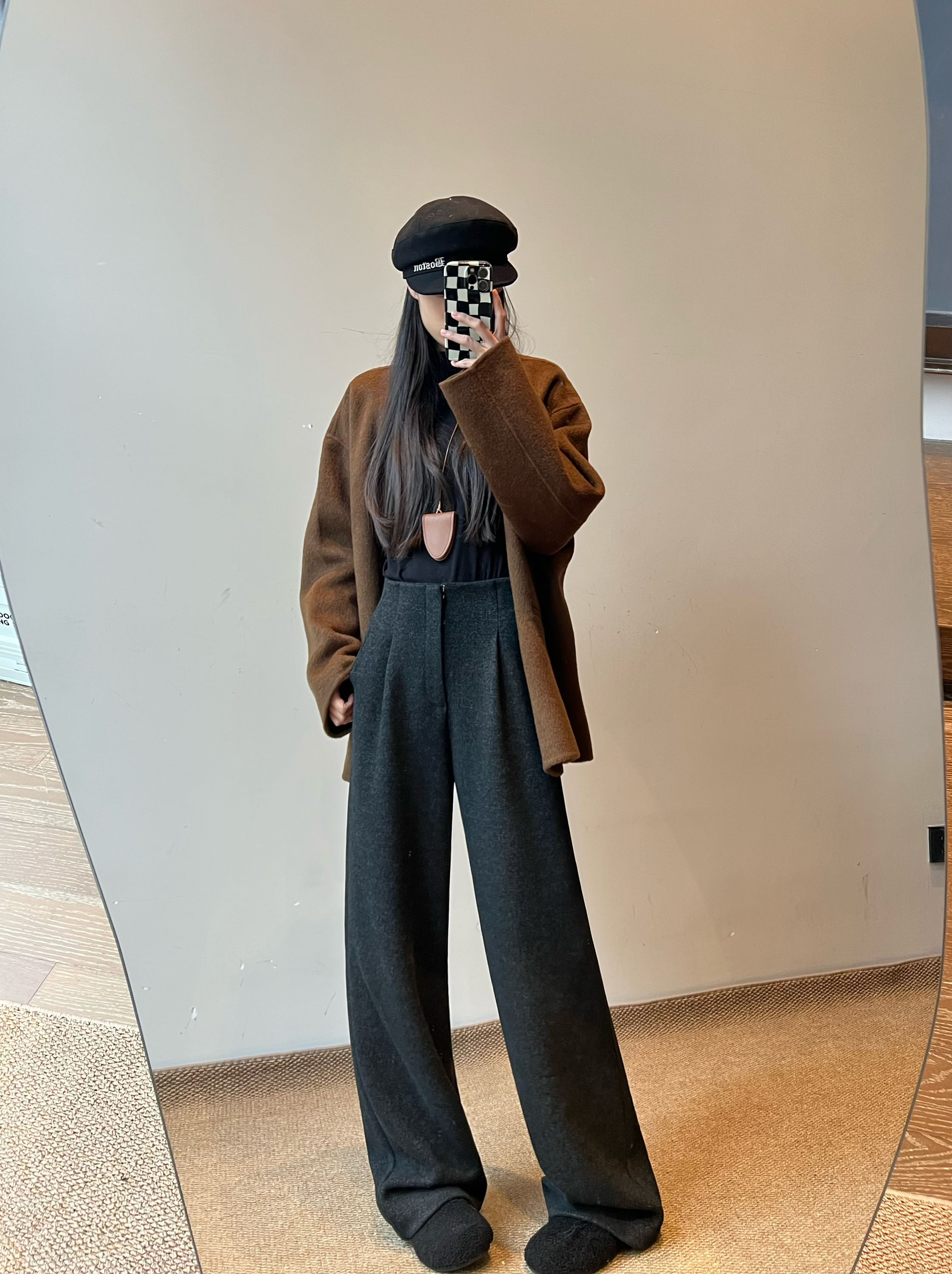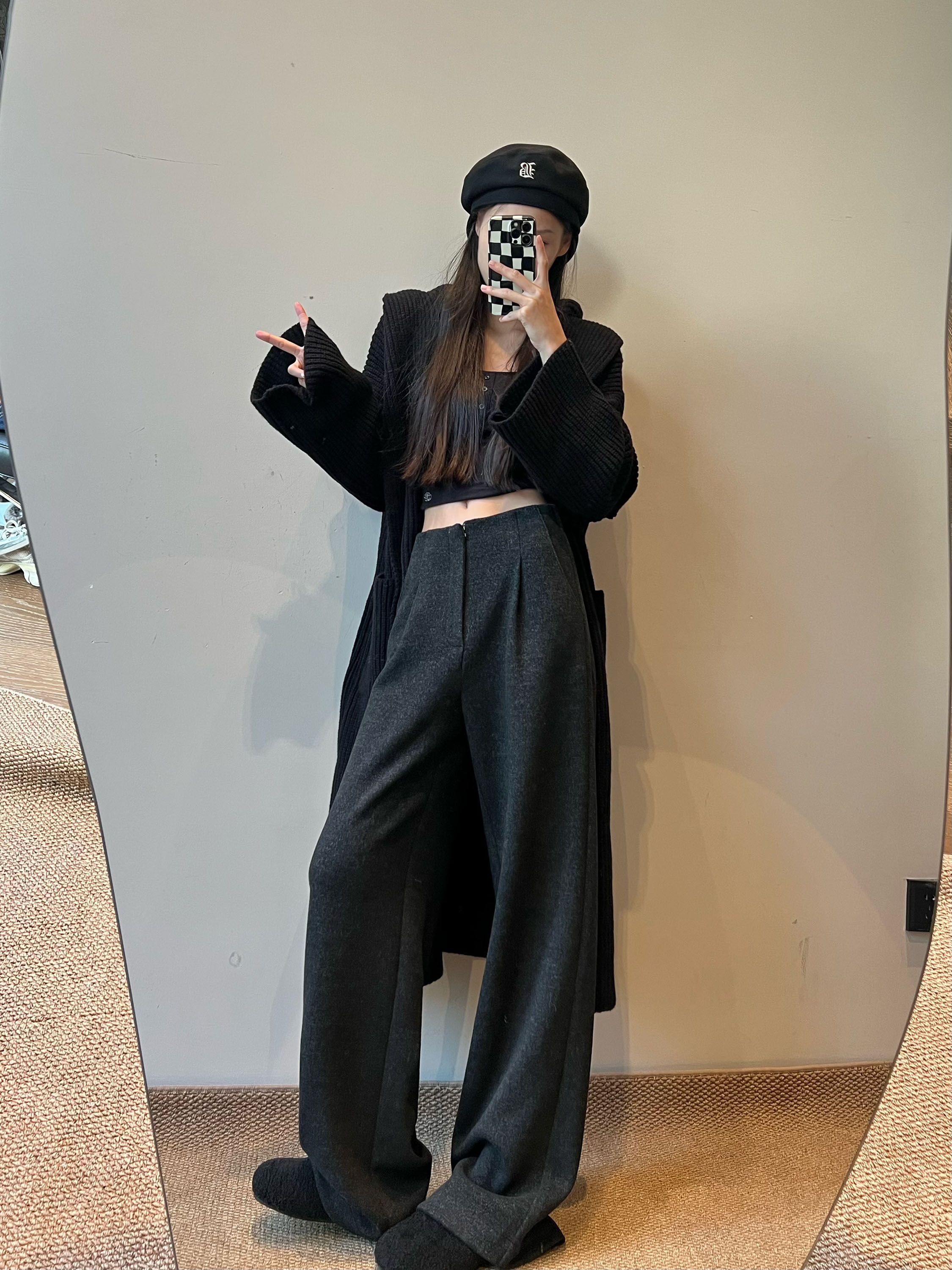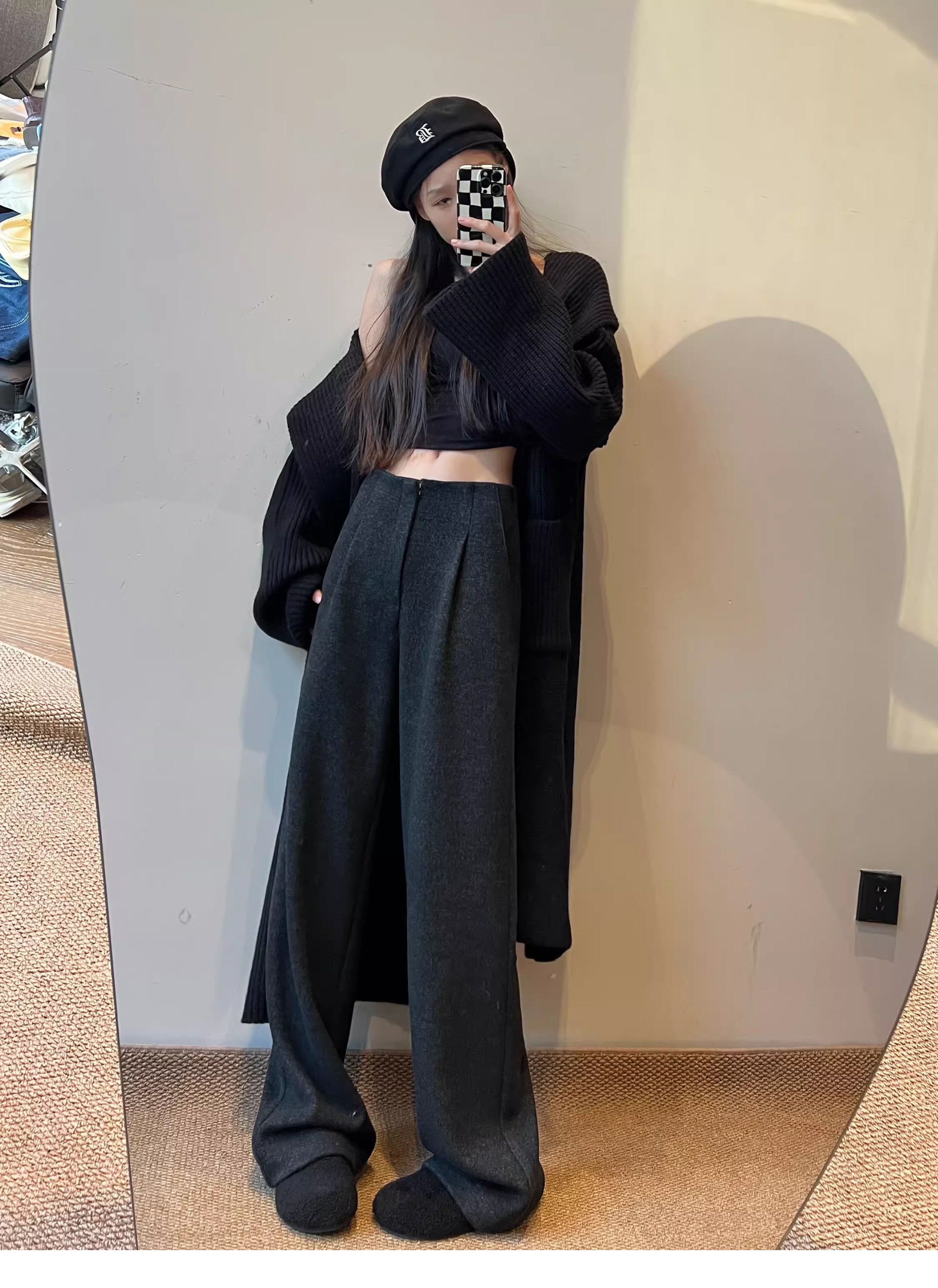 白色加绒加厚西装阔腿裤女秋冬款季羊毛糯米裤高腰垂感休闲直筒裤