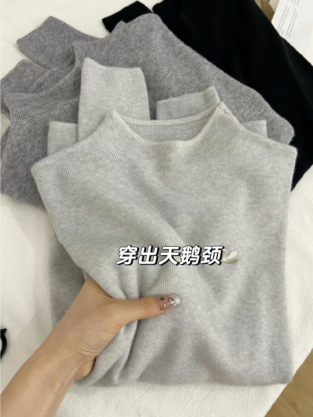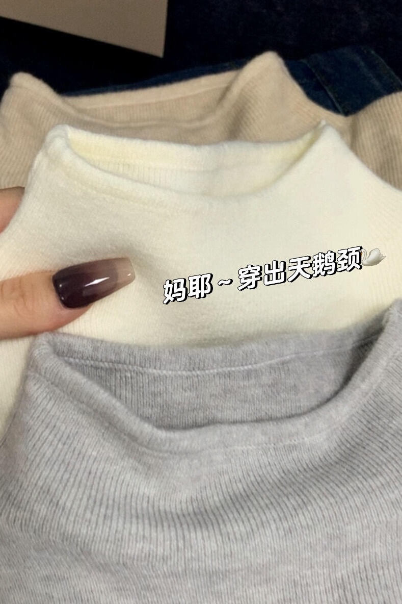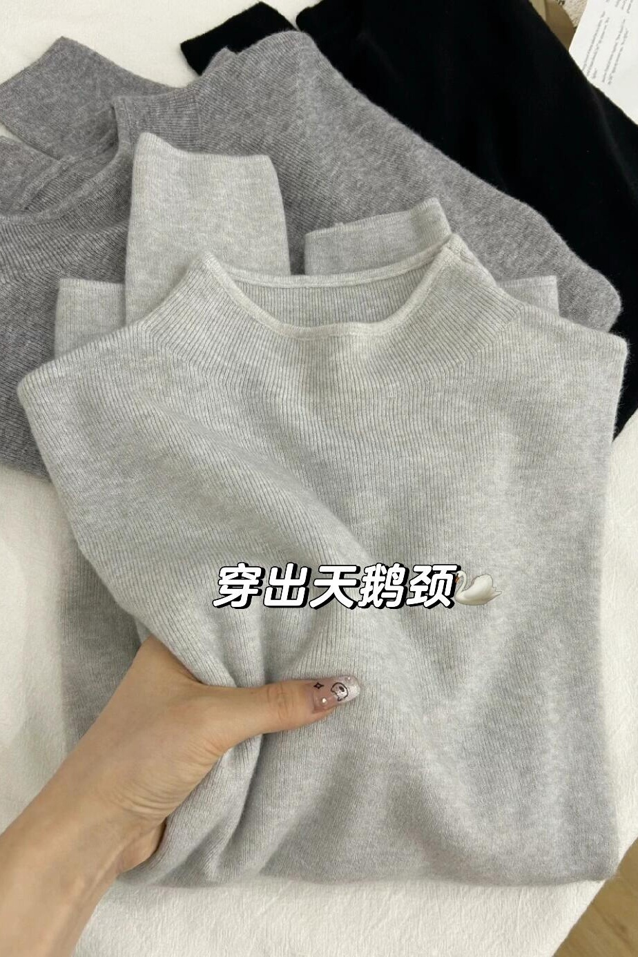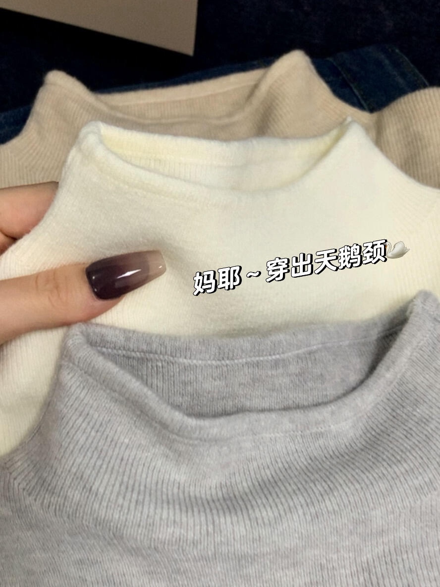 奶fufu软糯半高领针织打底衫女秋冬内搭可外穿宽松小立领毛衣上衣