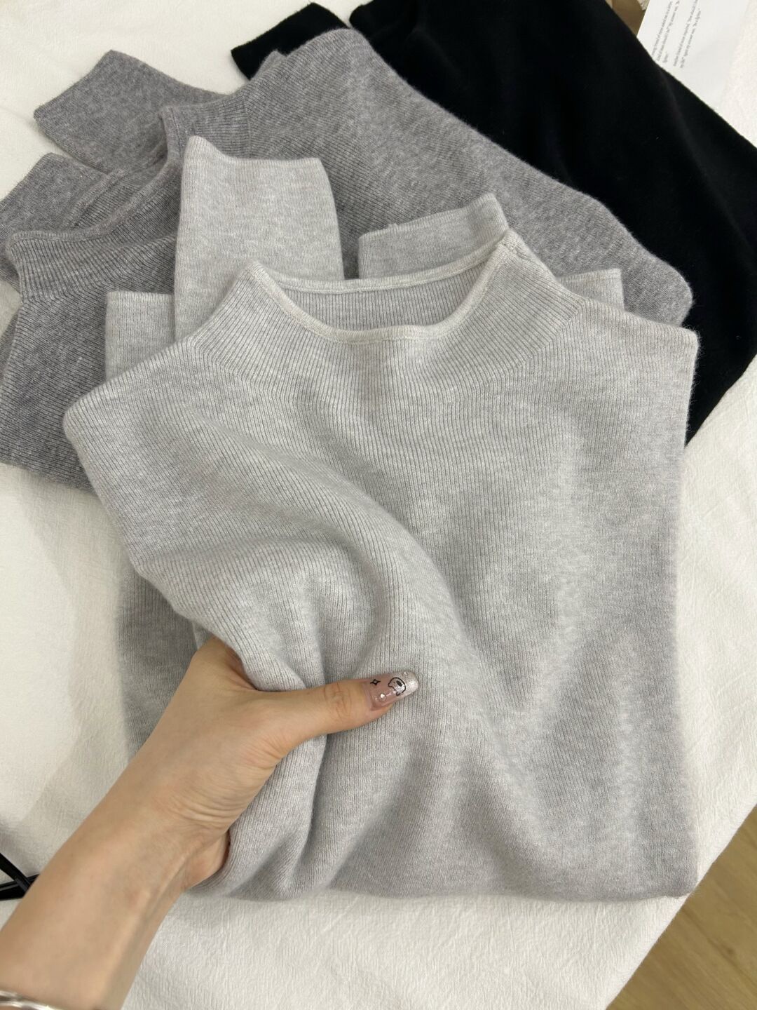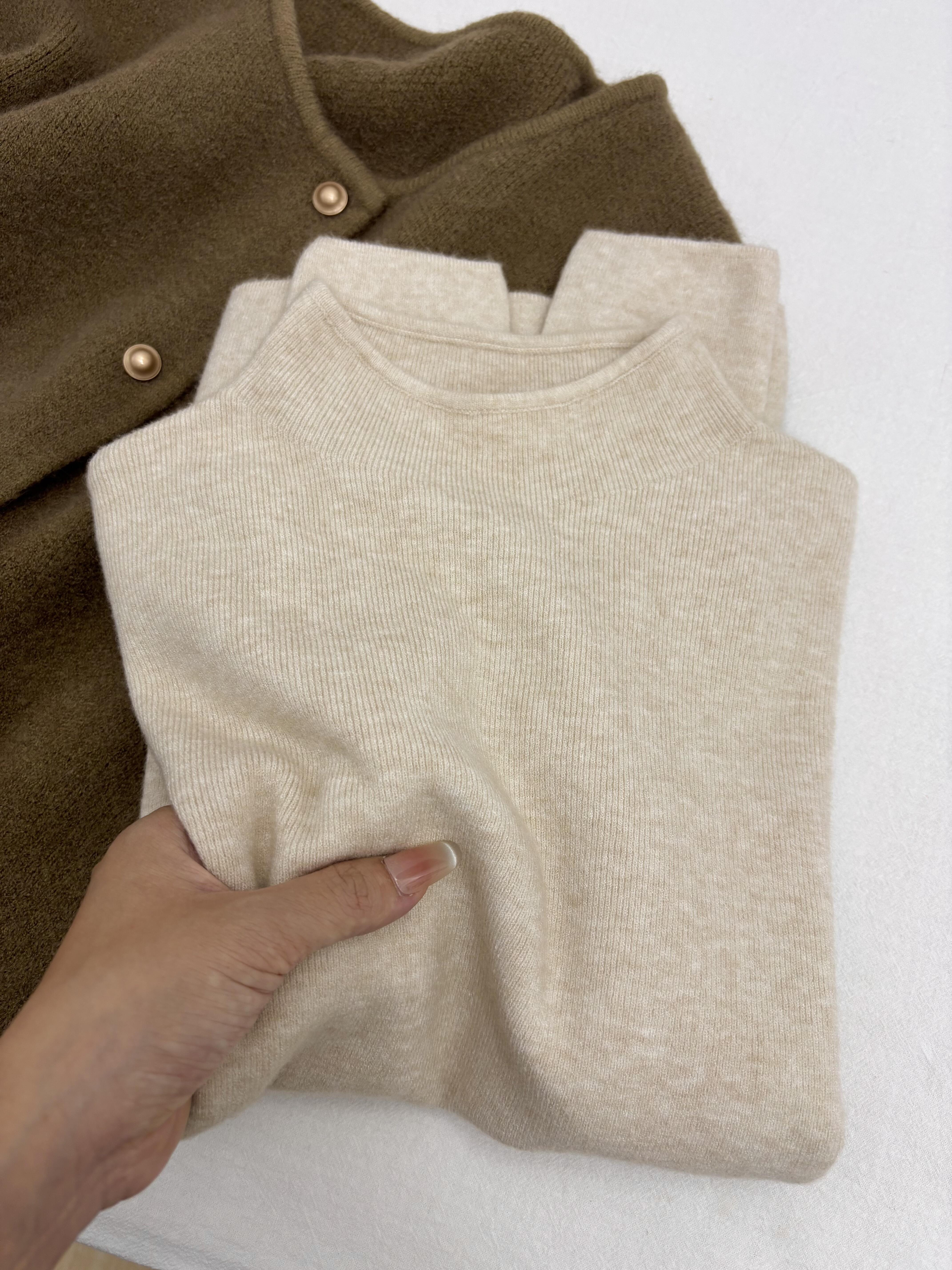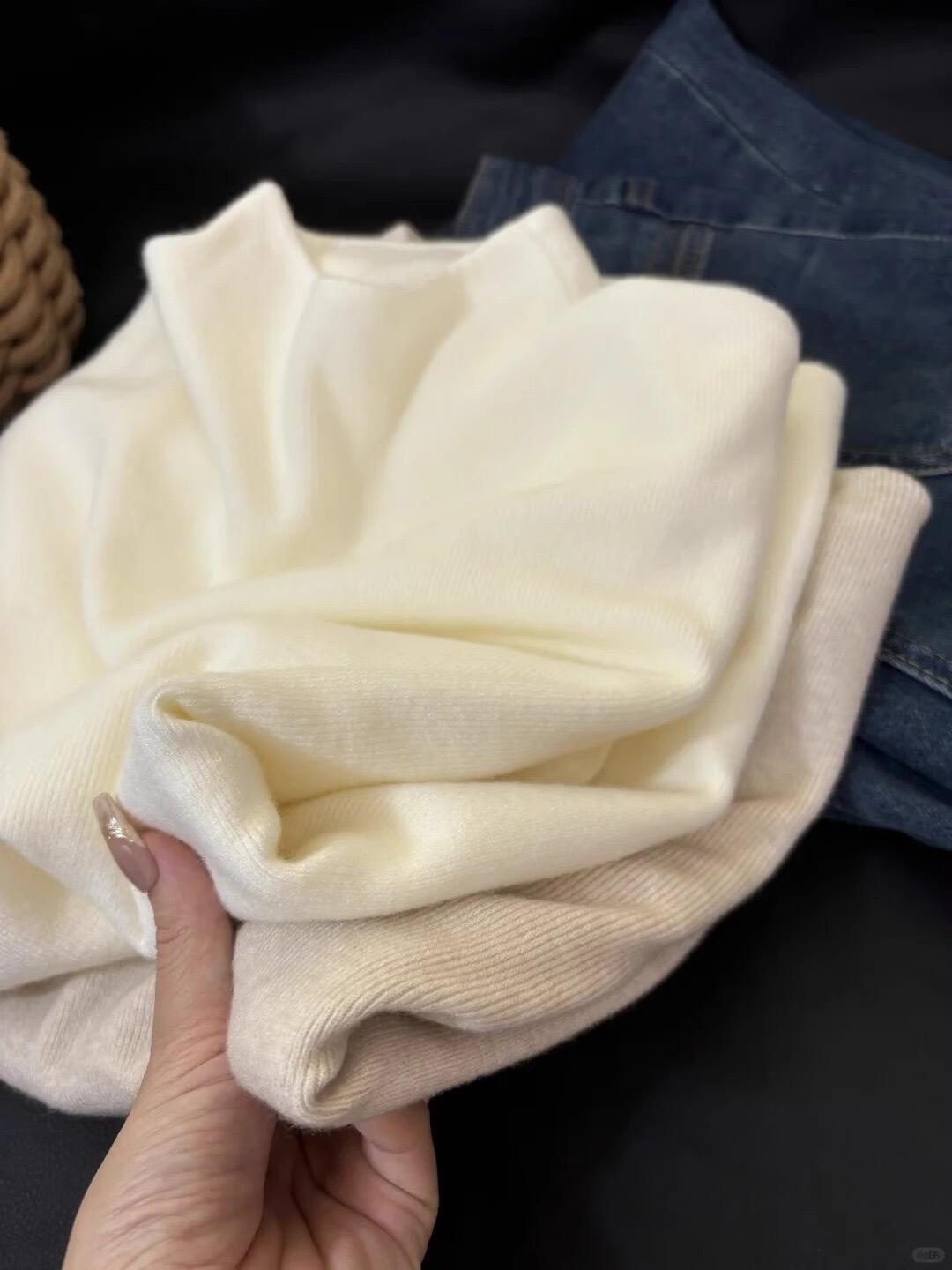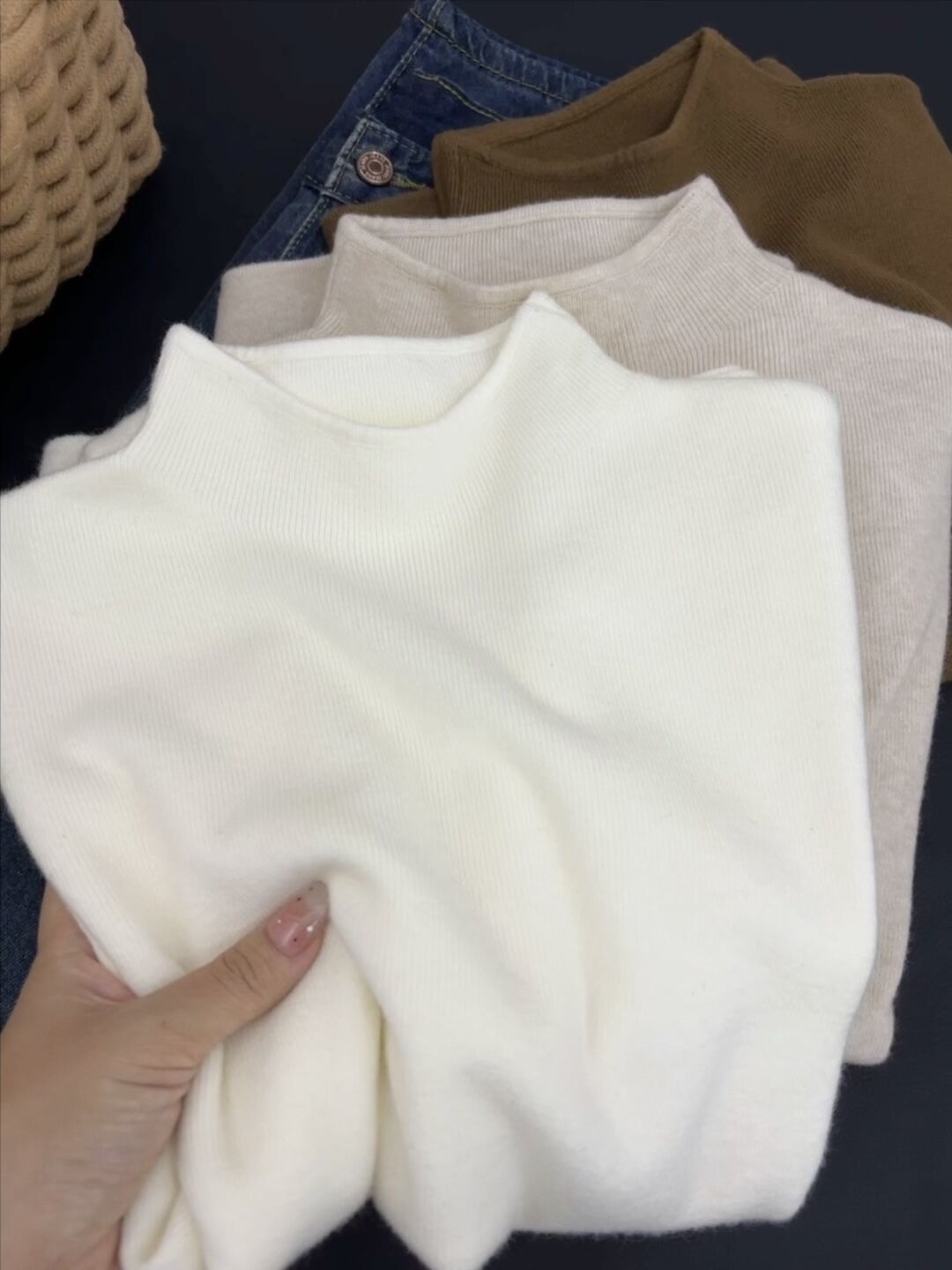 奶fufu软糯半高领针织打底衫女秋冬内搭可外穿宽松小立领毛衣上衣