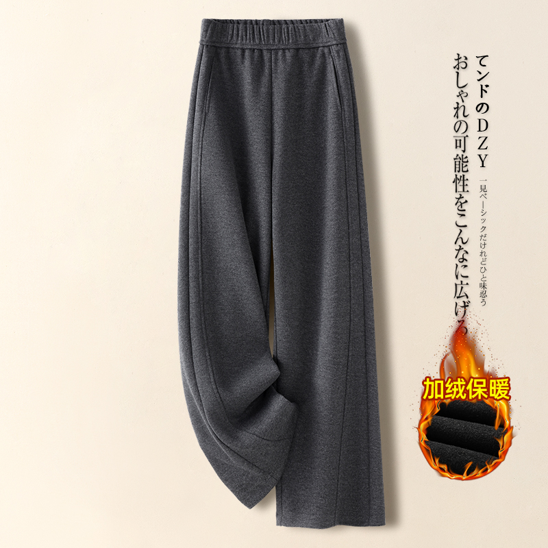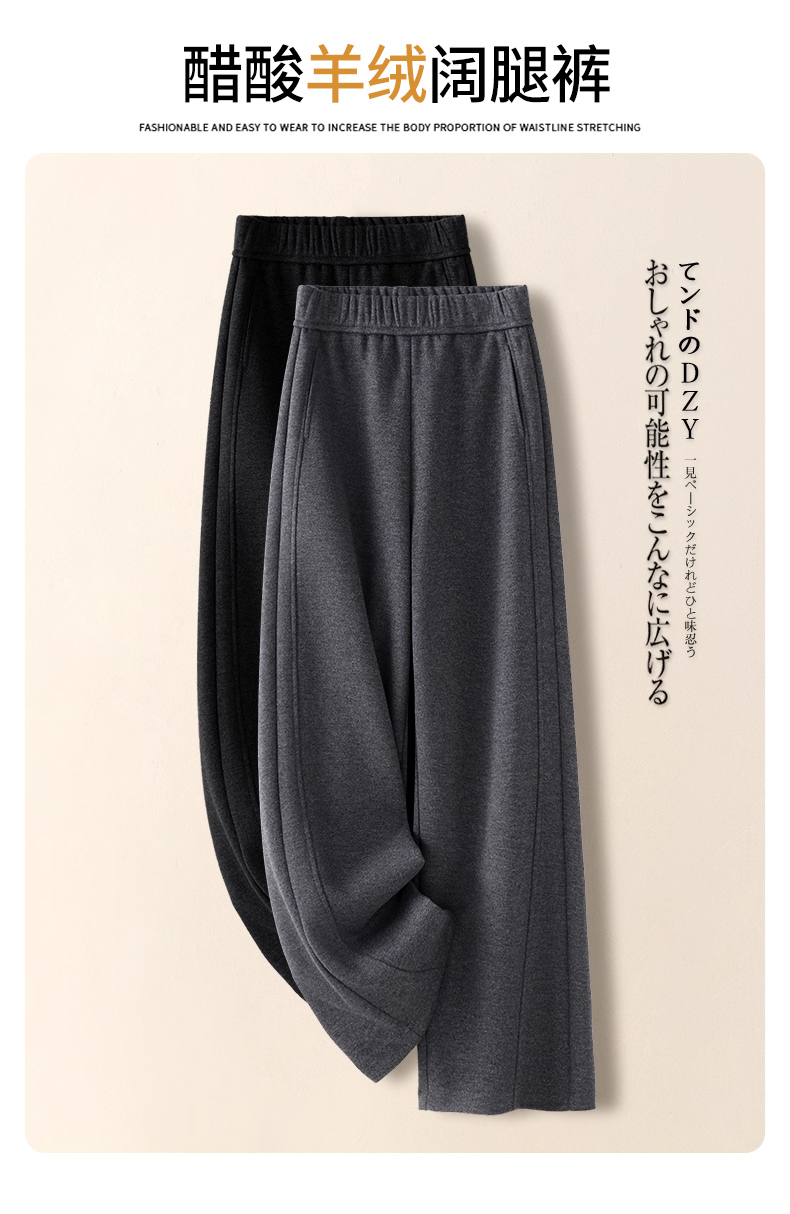 巨好看羊绒灰色阔腿裤女秋冬2025新款九分糯米裤羊毛呢弯刀直筒裤