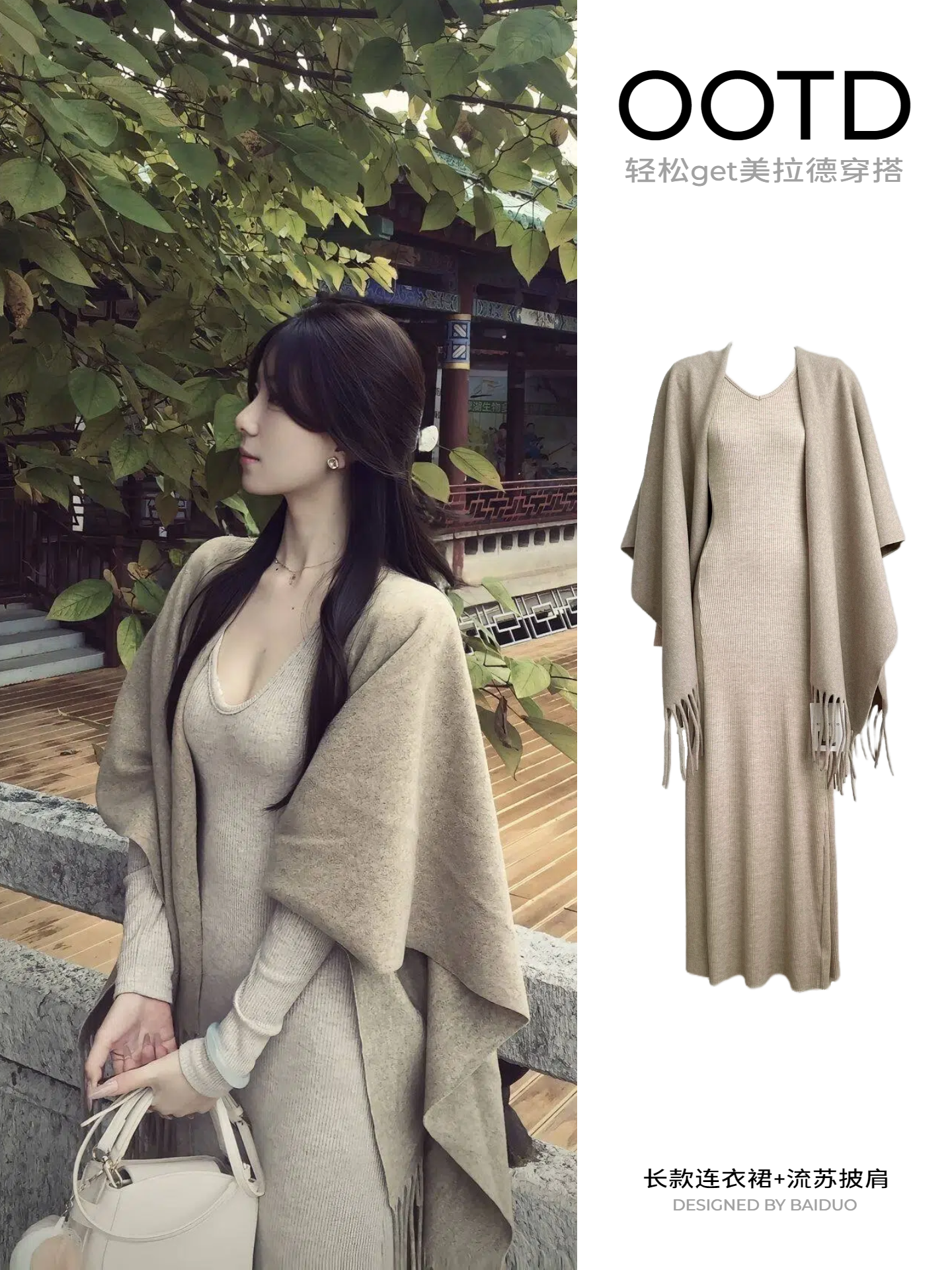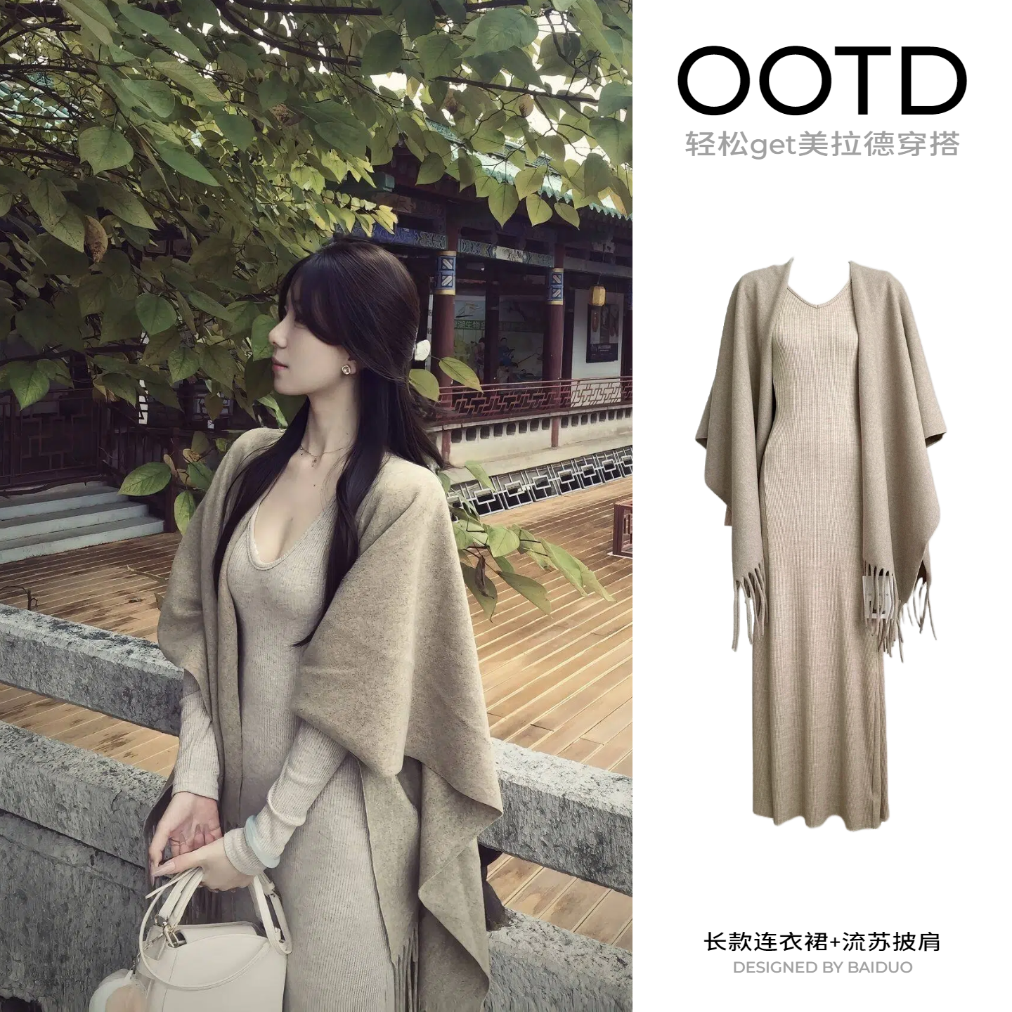 披肩连衣裙两件套装裙子冬季韩系一整套深冬穿搭气质超好看冬裙
