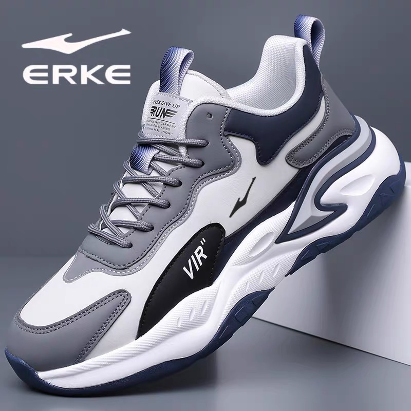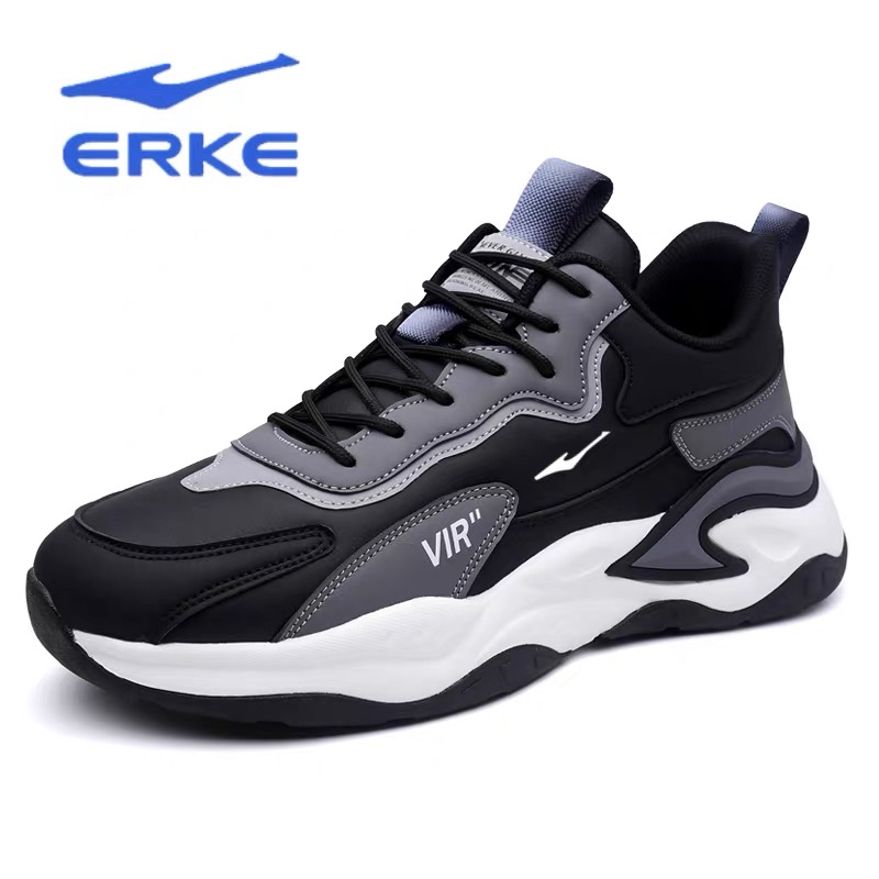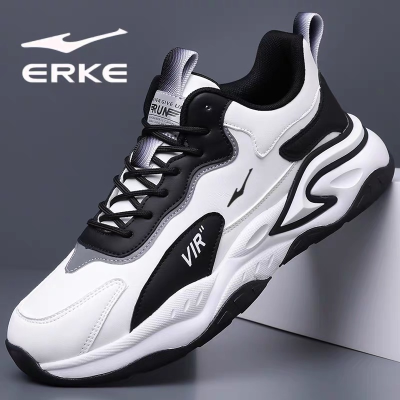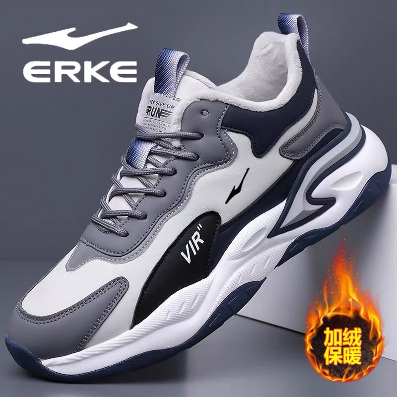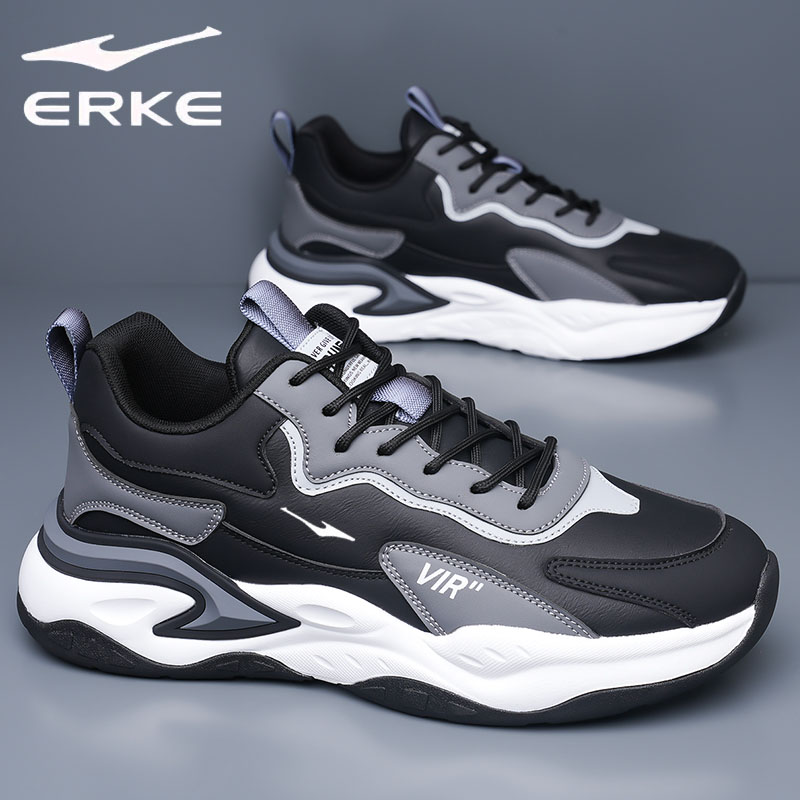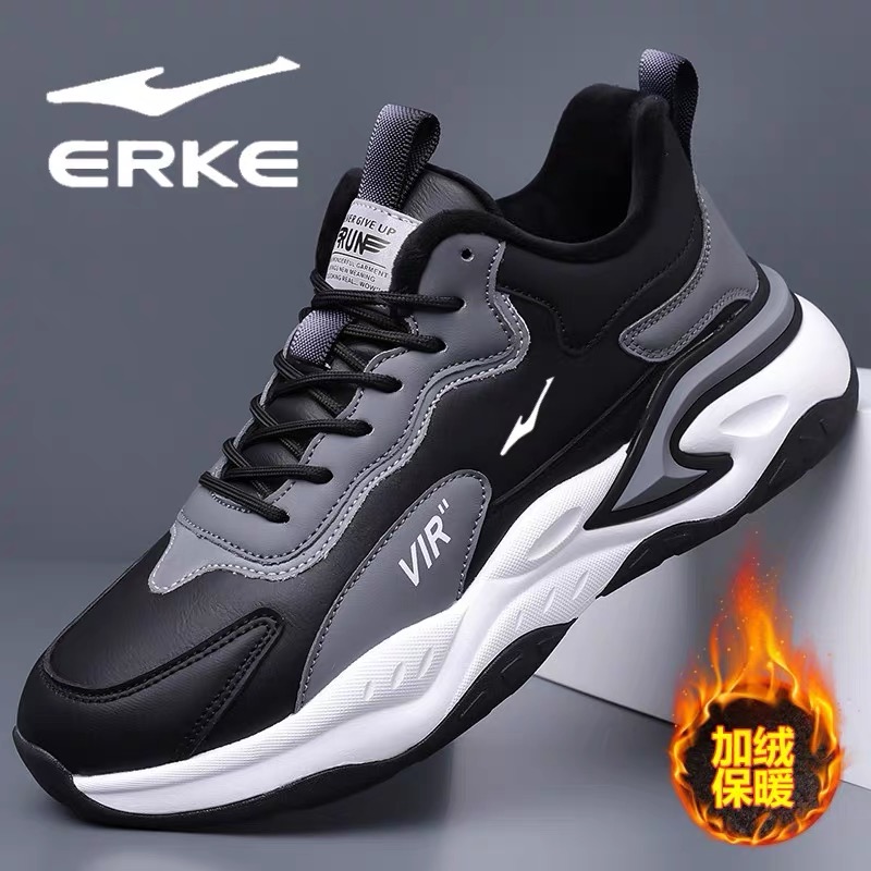 erke/鸿星尔克秋冬新款男鞋皮面防水运动休闲鞋软底减震跑步鞋子