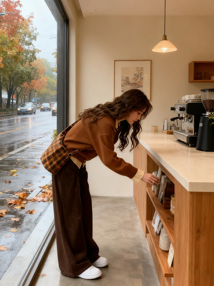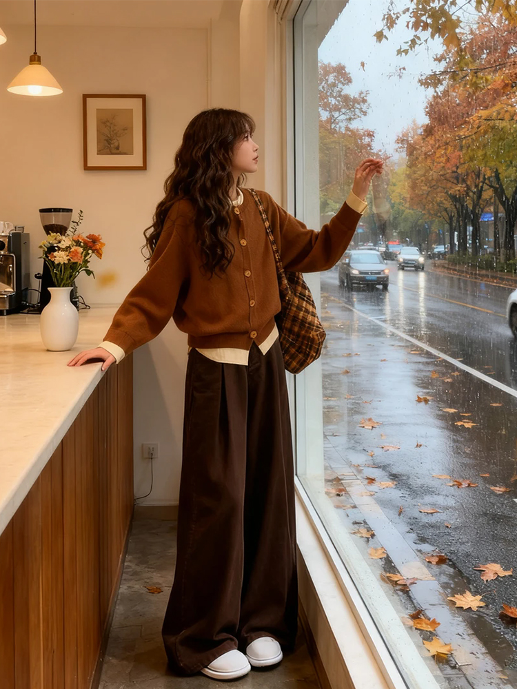 韩系穿搭假两件开衫毛衣秋冬时尚拼接针织衫外套休闲阔腿裤两件套