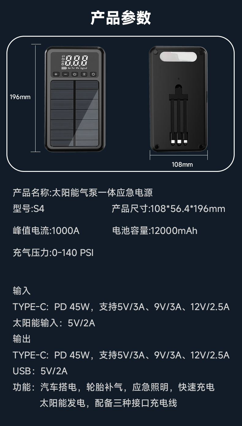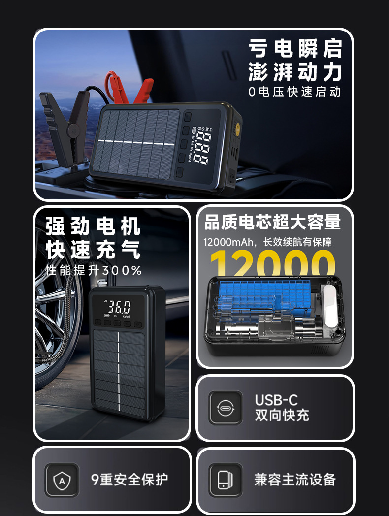 方块天蓬应急电源大容量一体机汽车应急启动充气泵防漏电照明集中