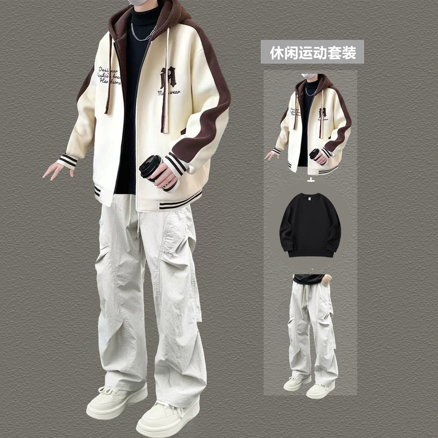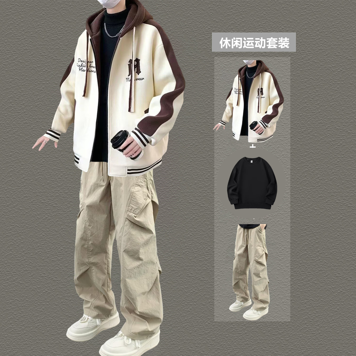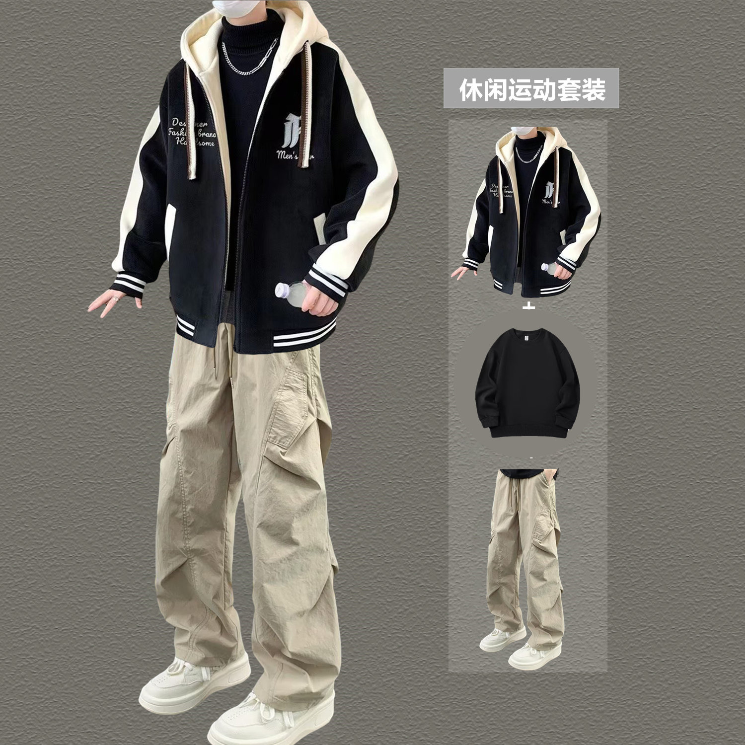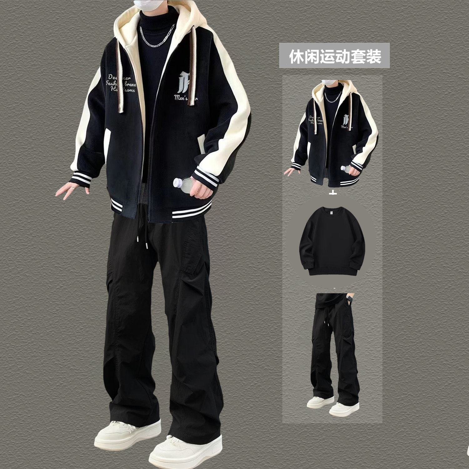 2026春秋季新款休闲运动套装男连帽卫衣青少年潮流帅气男装一整套